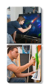 David Giersch. Durch seine besonderen Fähigkeiten im Umgang mit Spaydosen im Bereich Wandgestaltung. Die Kombination Airbrush-Graffiti