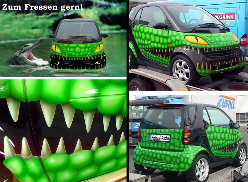 Ein Airbrush auf dem Auto ist nur schön anzusehen? Nicht nur! Denn die Idee mit Airbrush ein Auto zu lackieren kann sehr gut zu Werbezwecken eingesetzt werden. Diese Sonderlackierung bleibt beim Betracher der Autos lange haften vielleit sogar unvergesslich. die Preise für ein airbrush auf dem Auto richten sich stets nach den Details und Aufwand. Um das Design für das Airbrushbemalung genau zu planen wird das Auto zuvor fotografiert und dann mittels Garfikprogramm am Computer genau geplant. Carstyling am PC oder Airbrush mit dem Computer ist die sicherste Mehthode bei der Design Erstellung für ein Motiv nicht nur beim Auto Airbrush Design. Desweiteren sollte man auch bedenken das durch das Airbrushen des autos das Fahhrzeug mindestens eine woche beim Airbrusher steht und dann muss der Lackierrer das Airbrush noch mit Klarlack versiegeln. Beim Airbrush auf Autos werden kleinen AirbrushPistolen aber auch Lackpistolen verwendet die der Lackierer sonst verwendet, um die Hintergründe und Farbverläufe für das spätere Airbrush Design auf dem Auto anzulegen. die Airbrush Motive auf dem Auto halten Jahrelang durch den Klarlack. Sind aber genauso anfällig gegen Vandalismus wie herkömmlicher Lack. Wasser, Regen und Schnee dagegen kann dem Airbrush Design auf dem Auto nichts anhaben. Mit Airbrush lässt sich Werbung effektvoll auf dem Auto in Szene setzen. Ob das Airbrush nur auf der Motorhaube oder auf dem Gesammten Auto verteilt, wichtig ist die Regel : oft ist weniger mehr. also nichts Übertreiben. Sollten sie noch Fragen zu Thema Airbrush auf Autos und Airbrush Lackdesign haben rufen sie mich doch einfach an. Ich berate sie gern zu diesem Thema oder allgemeine Fragen zu Airbrush und Umgang mit der Airbrush Pistole beim Car Styling.